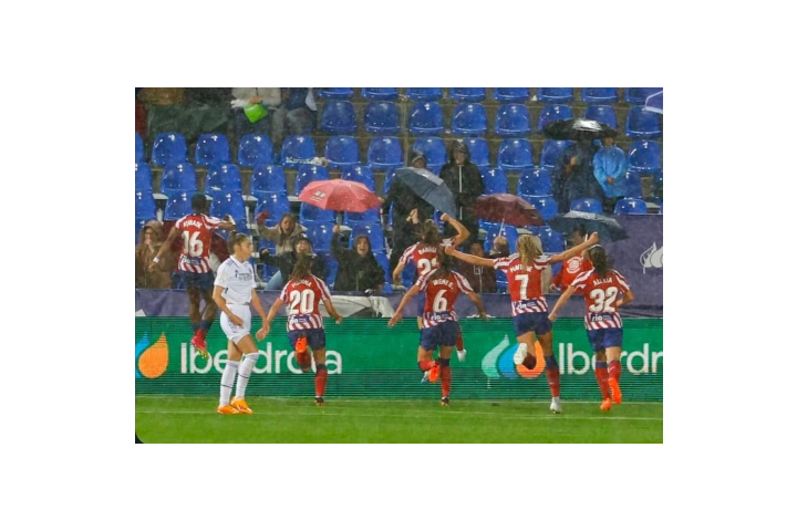 Before half-time, we had to take out our umbrellas, but we never imagined the deluge that was prepared afterward, which brought memories of another epic stormy derby night at the Calderón. The rain hurt, there were thunder and lightning, we got soaked to the bone, but if the girls showed courage and heart, we couldn’t be less. The rain prevented us from seeing, and we didn’t know if our words of encouragement were heard. Much of the audience had already left (more white than red and whites, they are much more affected by rain, and the 2-0 made them think that the winner was already clear, and they could leave the stadium because their job was done), but we know that our players are the girls who never stop believing, we are Atleti, and we managed to reverse a 2-0 deficit with two goals in the 88th and 95th minutes that forced extra time.