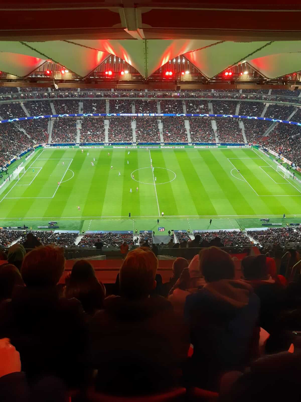 Und endlich gingen wir rein! Die schönheit des Veranstaltungsortes, die Champions League-Atmosphäre und die Gewissheit, sich umgeben von der rot-weißen Familie zu Hause zu fühlen, machten diesen Moment einzigartig und besonders. Endlich die Gesänge live hören, mit anderen Fans sprechen, unsere Schals und Fahnen zeigen und schließlich ein aktiver Teil dieser rot-weißen Welt sein … Atleti pur!