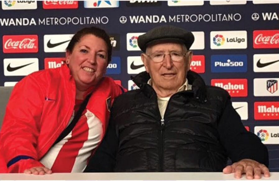 Ich ging mit meinem Vater ins Calderón. Er war seit ‘42 Mitglied, und obwohl er später mit meiner Mutter nach Deutschland ging, blieb er bei seiner Rückkehr Mitglied. Wir lebten ganz in der Nähe der Plaza de los Cármenes, neben dem Stadion, und Atleti war immer in meinem Zuhause präsent. Mit 19 emigrierte ich, aber ich verlor nie diese Leidenschaft. Ich erinnere mich daran, wie ich mit meinem Vater das Atleti-Lied auf dem Tonbandgerät hörte, nicht einmal auf Kassette. Stell dir vor (lacht). Er erzählte mir, dass er den Bau des Vicente Calderón aus Deutschland über das Radio verfolgte. Er hat nie die Verbindung verloren, und Jahre später habe auch ich sie nicht verloren.