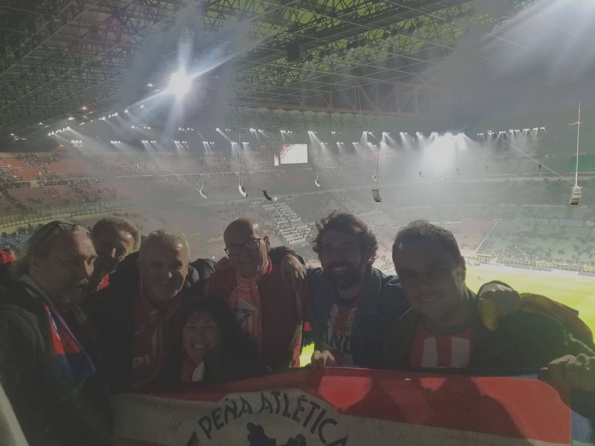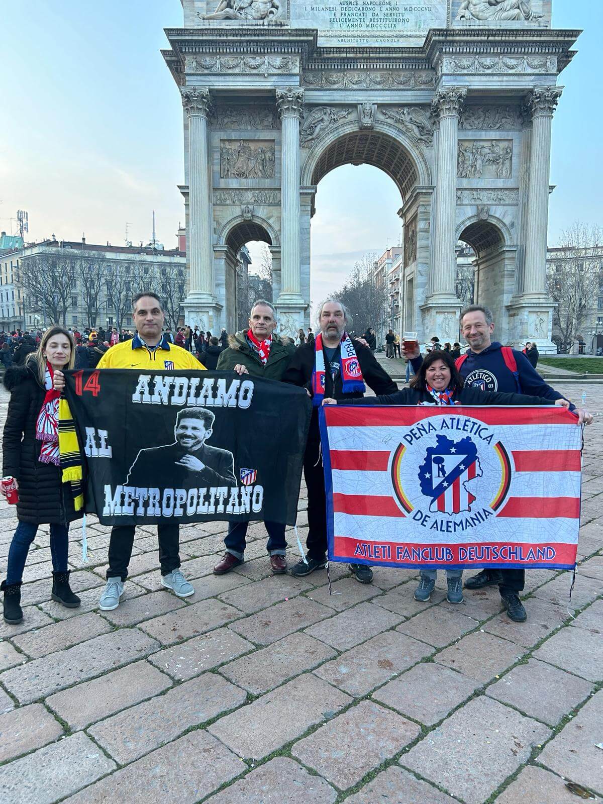 Für viele Fans ist es ein Traum, ein Spiel in Italien zu sehen. Für diejenigen unter uns, die mehr als einmal dort waren, ist es immer noch russisches Roulette: Die Italiener sind unberechenbar in ihrem Spiel und in ihrer Organisation. 14 Mitglieder der Peña Atlética de Alemania beschlossen, das Schicksal herauszufordern und unsere Peña weiterhin zum dynamischsten in diesem Land zu machen, also fragten wir um Karten mit der Gewissheit, dass sie uns gewährt würden, und wir alle markierten den 20. Februar in unseren Kalendern. Ziel Mailand".